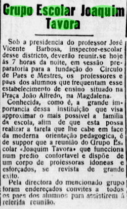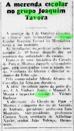 O Grupo Escolar Joaquim Távora teve seu nome instituído oficialmente em 19 de novembro de 1930, em substituição ao antigo nome de Grupo Escolar Wenceslau Braz, que desde 1927 já estava instalado no número 28 da Rua Carlos Gomes (frequentemente citado também que o endereço era na Praça Conselheiro João Alfredo), sendo vinculada ao então 4º Distrito Escolar da administração pública estadual. Desde o início a escola era reconhecida pelo serviço prestado à comunidade, sendo muito concorridas as exposições que realizava para o público dos trabalhos dos estudantes, além das quermesses e eventos esportivos nos quais era bastante eficiente. Já em 1935 a escola se destacava também por ter sido uma das primeiras da rede pública a contar com o oferecimento de merenda para seus alunos, iniciativa que envolveu a atuação da Associação de Pais e Mestres, da Secretaria do Interior (que na época também administrava a rede escolar oficial de Pernambuco) e de comerciantes do bairro da Madalena, que contribuíram com recursos financeiros, além de material para implantar a cozinha e o refeitório que foram especialmente construídos para o atendimento das necessidades alimentares dos estudantes. Com o passar dos anos a diversificação das oportunidades de ensino foi reforçada e na década de 1950 a escola passou a oferecer também formação profissionalizante na área comercial através do SENAC, que realizava seus cursos em escolas regulares até dispor de sede própria.