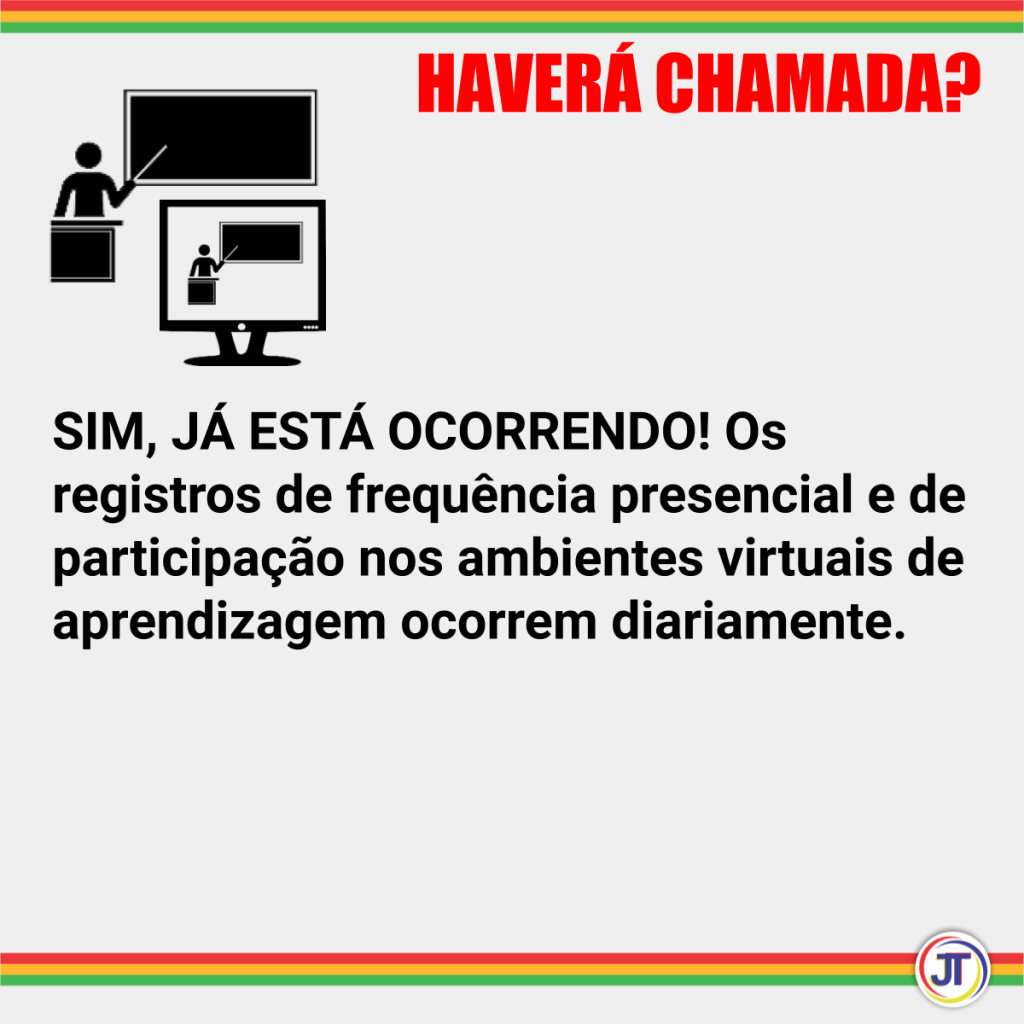 É importante que os estudantes acessem os ambientes de aprendizagem, verifiquem os materiais publicados, cumpram as atividades propostas e interajam com os professores. Esta participação será computada como presença na chamada e registrada no Siepe.