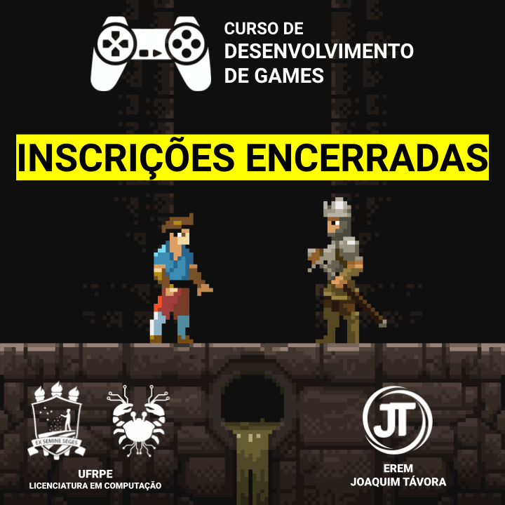 Vai começar a terceira edição da versão online do curso de desenvolvimento de jogos digitais realizado pela Licenciatura em Computação da UFRPE e pela EREM Joaquim Távora. Na modalidade remota o curso já chegou a alcançar participantes de vários estados brasileiros, promovendo um primeiro contato com um campo produtivo em expansão e repleto de boas oportunidades profissionais.