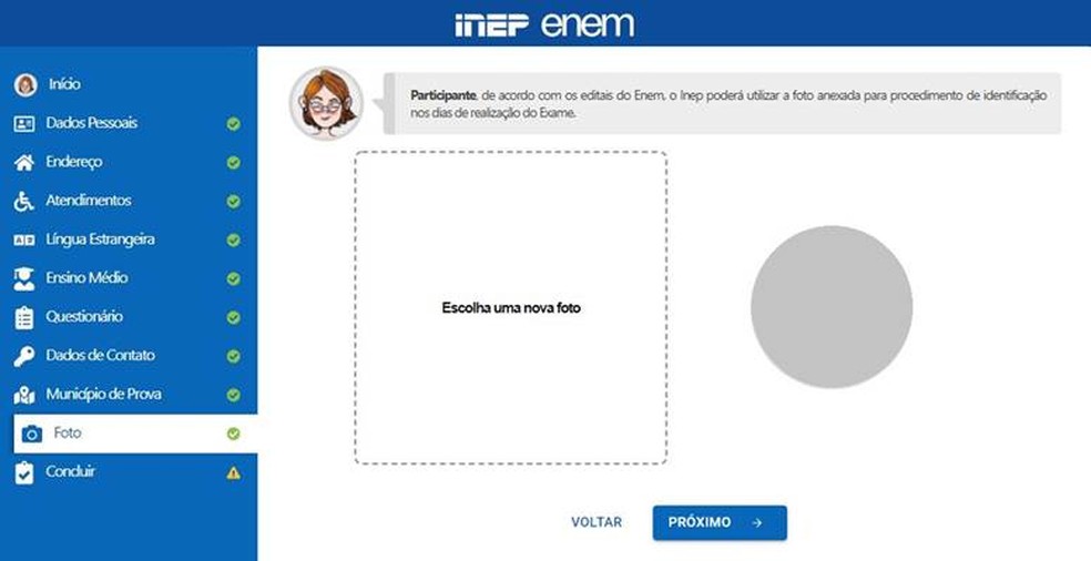 11- Insira uma foto. É muito importante que você já esteja com o arquivo disponível e acessível para agilizar esta etapa e não atrapalhar a realização de sua inscrição.