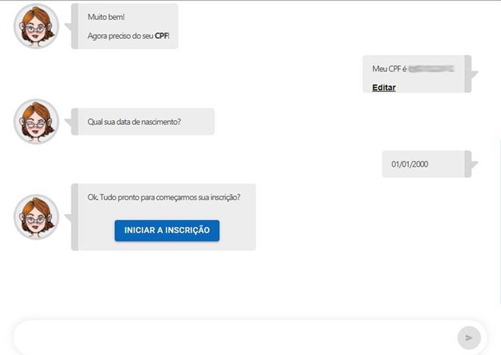 2- No diálogo que abrir, siga as perguntas que serão apresentadas para iniciar o processo de identificação e depois clique em “Iniciar a inscrição”