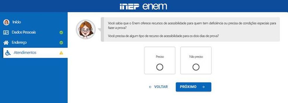 4- Responda se você tem necessidade de atendimento especializado e cliquem em “próximo”
