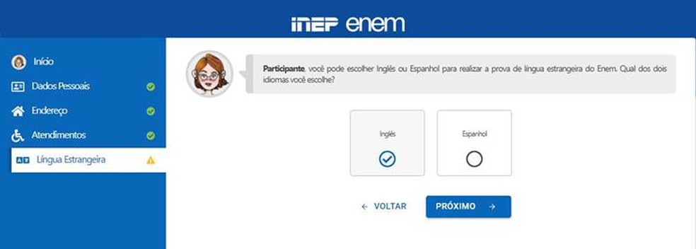 5- Escolha a prova de idioma que você fará