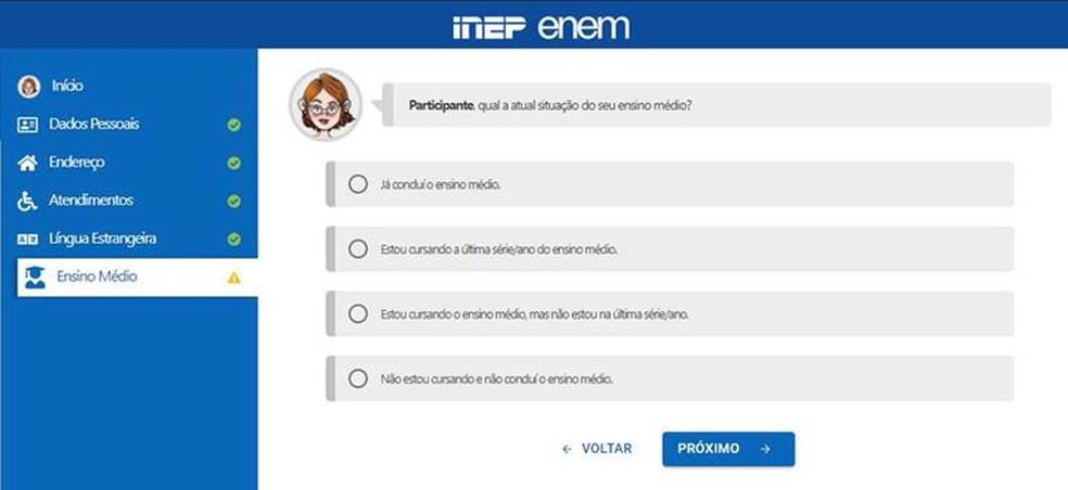 6- Identifique sua situação escolar, marcando “Estou cursando a última série/ano do ensino médio” se você é estudante do Terceiro Ano.