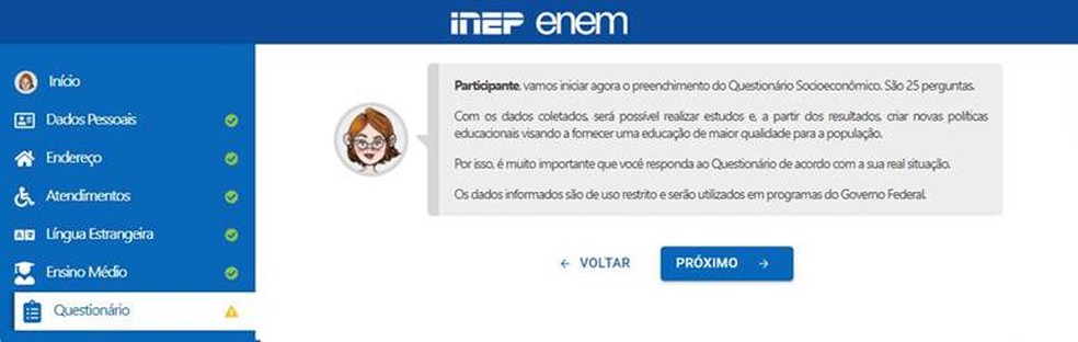 7- Responda o questionário socioeconômico que seguirá adiante. Serão ao todo 25 questões.