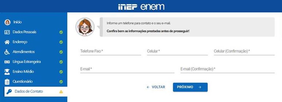 8- Atenção ao preenchimento dos dados de contato na etapa seguinte ao formulário socioeconômico.